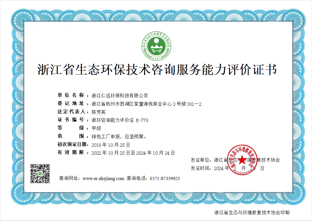 浙江省生態環保技術咨詢服務能力評價證書-清潔生產審核,應急預案
