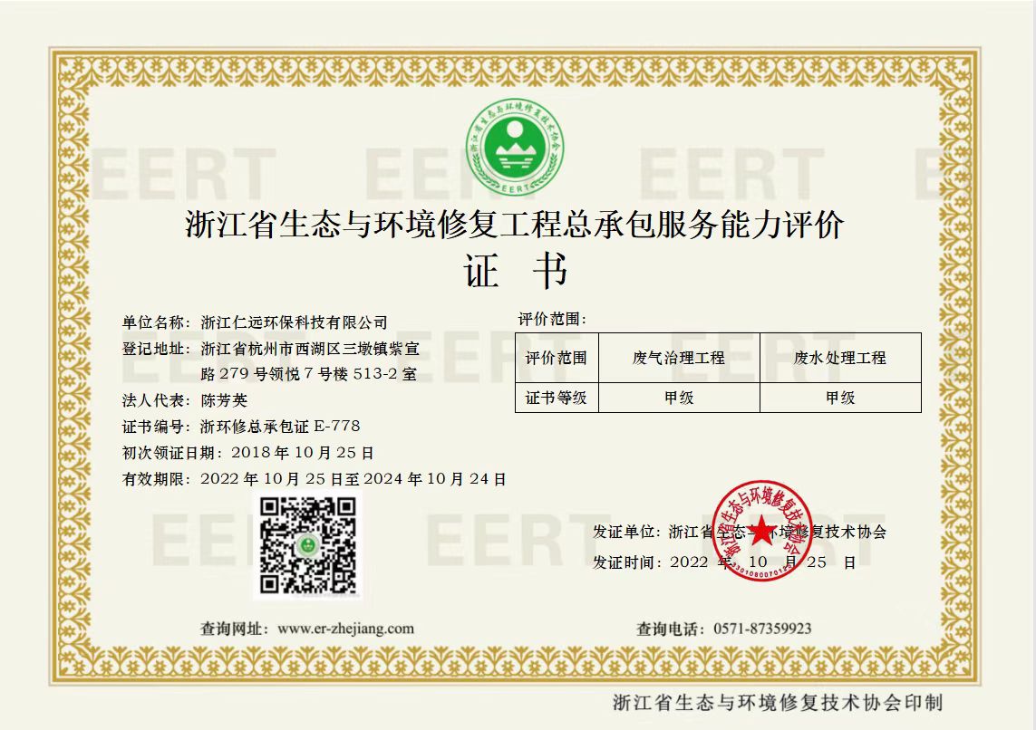 浙江省生態與環境修復工程總承包服務能力評價證書